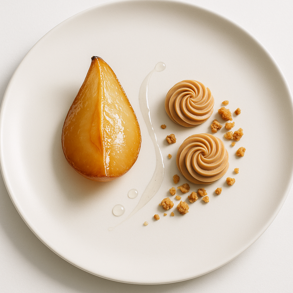 17 Apr. Dessert / Patisserie Birne in brauner Butter glaciert mit Walnuss-Praliné, Birnen-Gel und karamellisierter Walnuss-Crème Posted by CookWithaFriend April 19, 2026