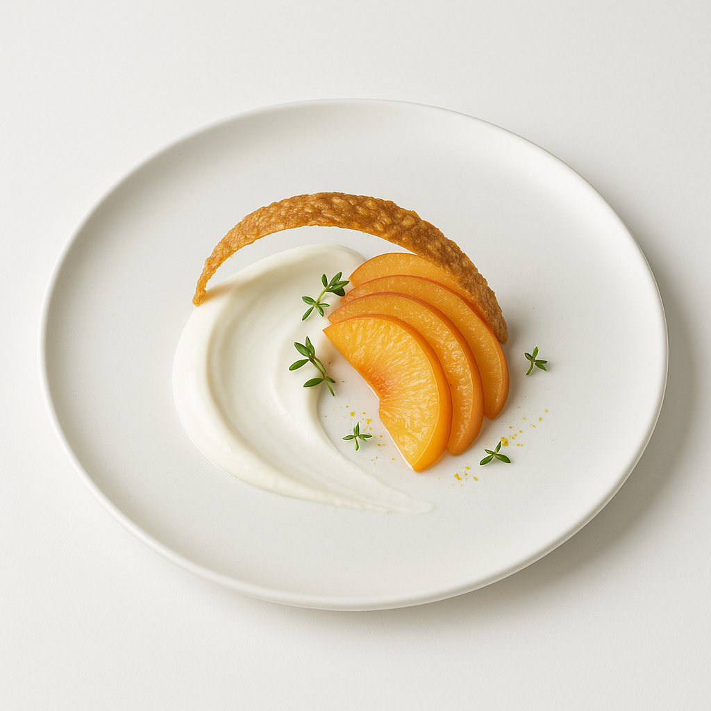 17 Apr. Dessert / Patisserie Pfirsich, Joghurt-Thymian-Crème und knusprigem Hafer-Tuille Posted by CookWithaFriend April 19, 2026