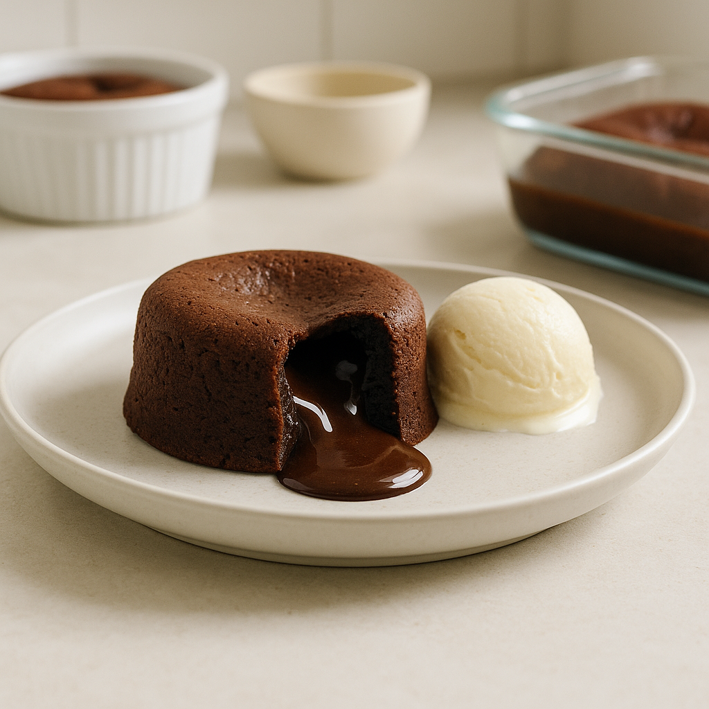 - Die genaue Backzeit hängt vom Ofen ab; lieber eine Minute weniger als zu viel backen, um den flüssigen Kern zu bewahren.